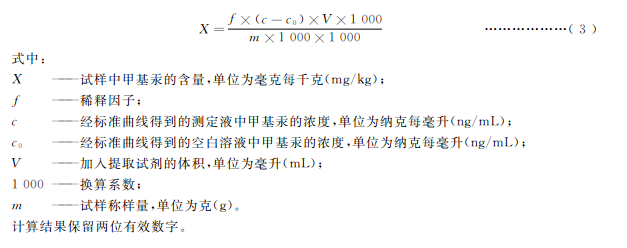 試樣中甲基汞含量按式(3)計算