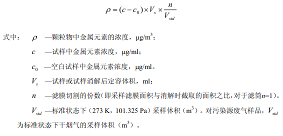 9.1 結(jié)果計算 顆粒物中金屬元素的濃度按下列公式計算:
