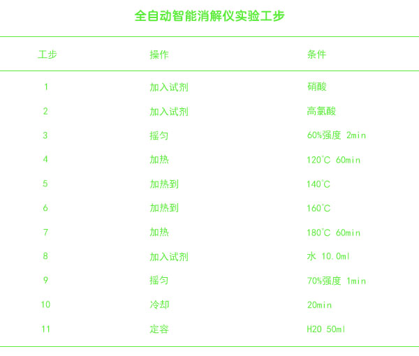 所有的樣品消解終點顏色均為無色透明。消解完全,進行元素檢測儀器進行進分析。實驗結(jié)果滿足標準,全自動智能消解儀擁有72個孔可以對樣品進行大批量消解,消解過程自動完成加酸、振蕩、加熱、趕酸、定容,一鍵搞定;采用電腦進行遠程操作,人員無需直接接觸酸霧,實驗安全、方便。